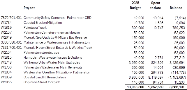 This report details projects to be undertaken in the Waihemo ward during the 2024-25 financial year, highlighting progress being made by reporting projected project cost and actual cost incurred to date. The intention of this report is to inform the Board on progress towards the completion of key capital works for the benefit of the communities in the Waihemo ward.
