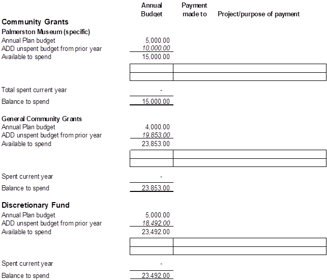 The annual budget for the Community Board includes amounts intended to enable it to provide a level of additional financial support within its local community.