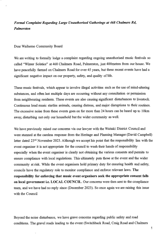 That the Waihemo Community Board formally receives two items of correspondence and considers officer comments (where available) and any actions in response.