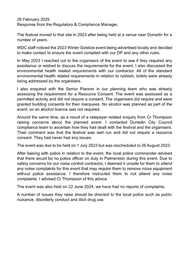 Resolved WCB 2024/053 Moved: Mrs Tanya Bell Seconded: Mrs Carol Watson That the Waihemo Community Board formally receives and notes the information. Carried |